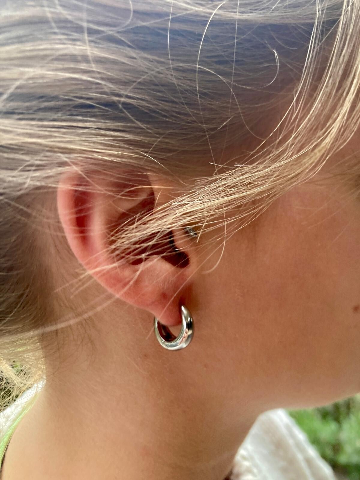 Klein maar fijn. Net wat dikker dan de standaard oorbel.Stainless steel met een coating van zilver (925).