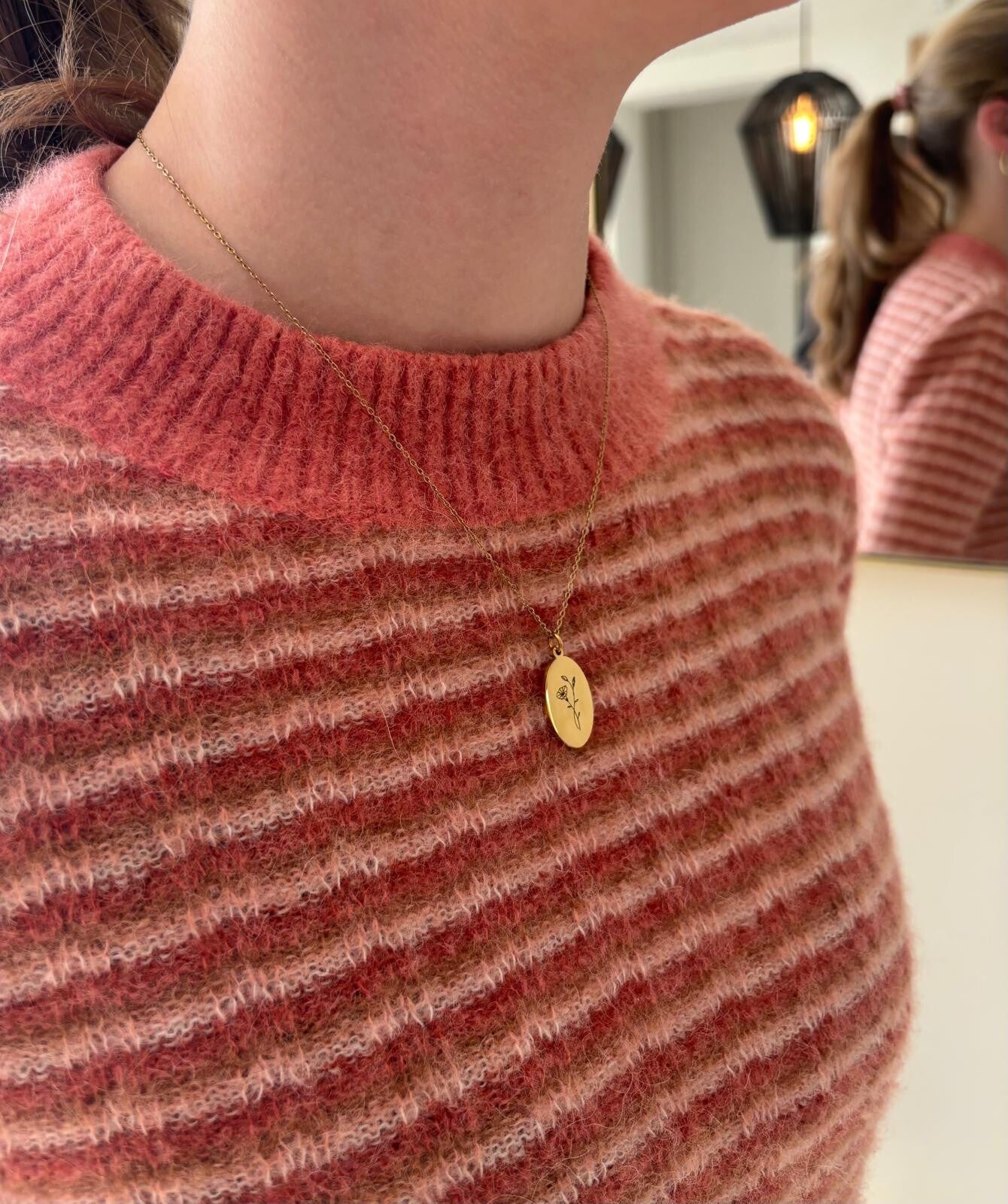 Ketting ovaal 1 disc geboortebloem(en)